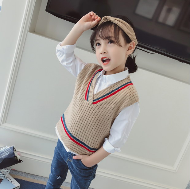 童装2018春装新款儿童马甲背心女童条纹毛线针织衫